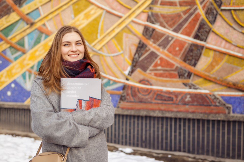 Гуляючи околицями Інституту ядерної фізики в Києві Ірина Яковчук, урбаністка, співзасновниця агенції «urban curators», гортає «Decommunized: Ukrainian Soviet Mosaics», перше комплексне дослідження радянських мозаїк, від видавництва «Основи». Книжка перемогла на у категорії «Мистецька книга» та отримала Гран-Прі на конкурсі «Книжкового Арсеналу» та Goethe-Institut в Україні за підтримки Франкфуртського книжкового ярмарку та фонду «Buchkunst», культурно-видавничого проекту «Читомо» на найкращий книжковий дизайн.