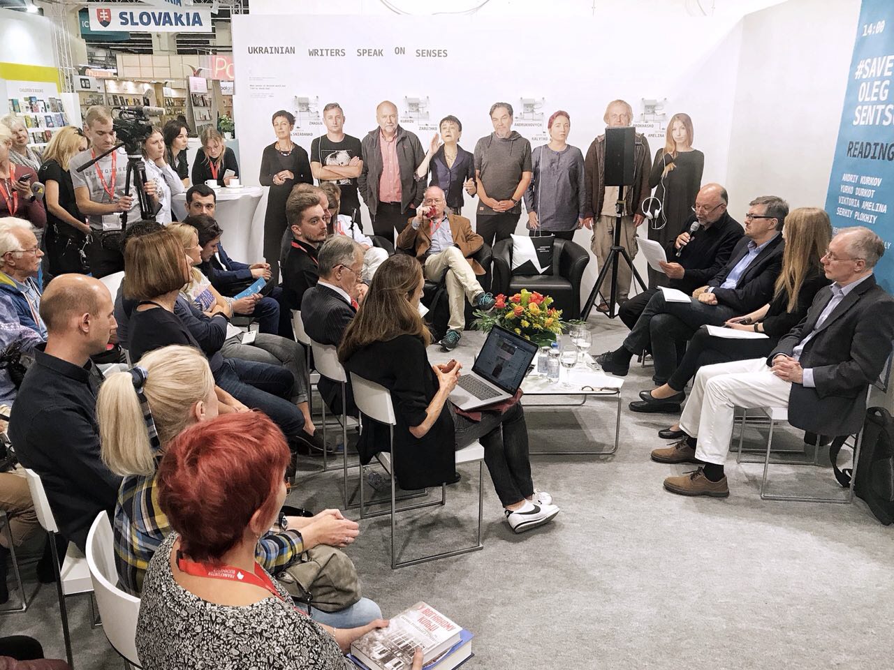 На українському стенді Франкфуртського книжкового ярмарку пройшли читання на підтримку Олега Сенцова та інших політв’язнів. Про це повідомляє кореспондент Читомо.