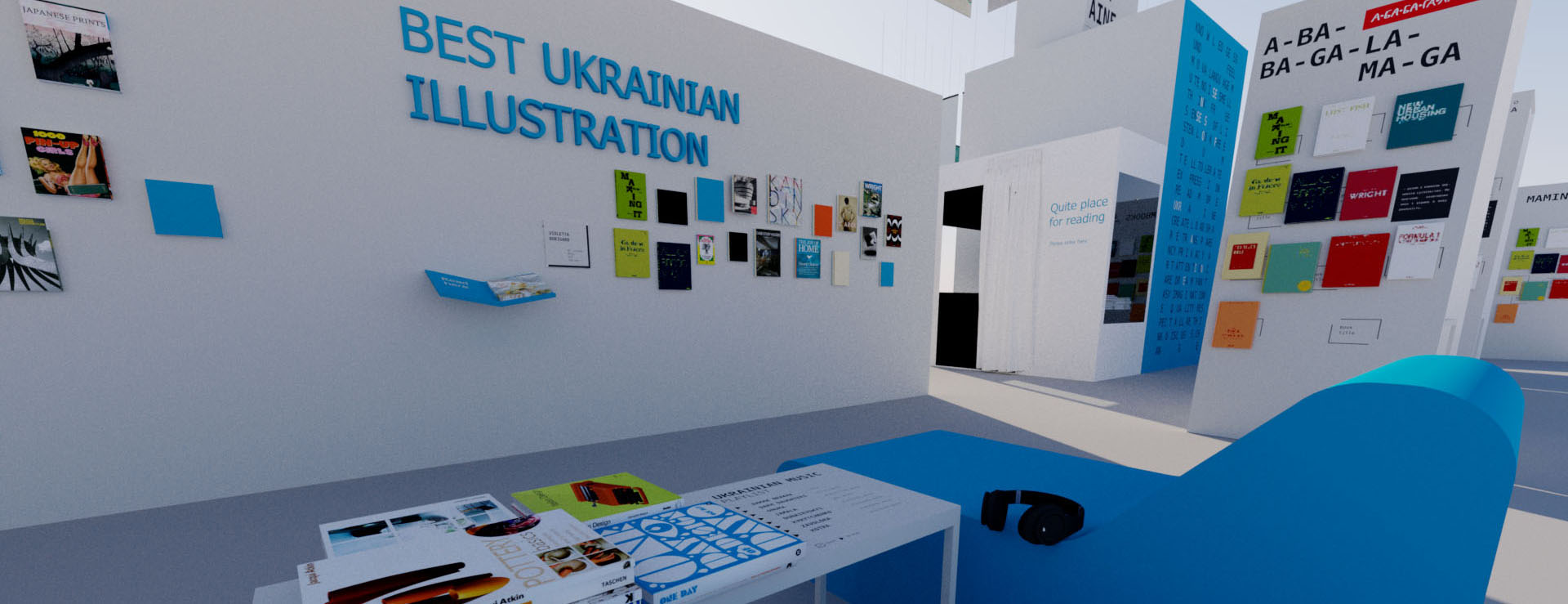 «У роботі над створенням візуально-просторової мови для стенду ми звертаємося не лише до експериментів з типографічним текстом, але й до природи і медіа цифрового тексту. Це дозволяє конструювати висловлювання додаючи процесійне генерування і фізичну взаємодію з цифровими формами тексту», – заявив він.