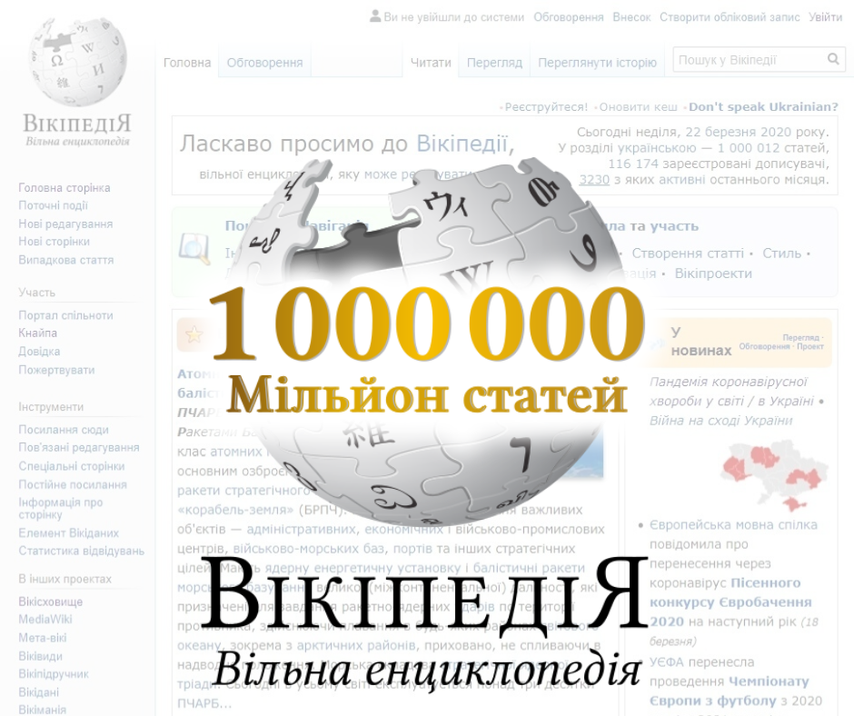Українська Вікіпедія подолала позначку в мільйон статей