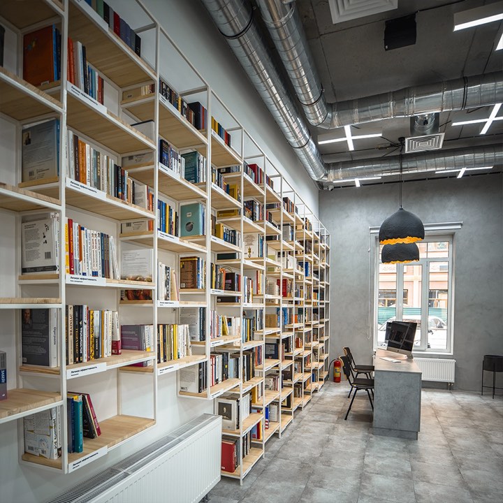 Інтер’єр бібліотеки розробила компанія Sergey Makhno Architects. Вони об’єднали два приміщення, які орендували власники, перетворивши їх на кілька зон. Основна частина містить саму бібліотеку, читальний зал і майданчик, на якому проходитимуть події та лекції. Зала обладнана трьома проєкторами, а також якісною системою вентиляції. За словами засновників, вхід до бібліотеки та користування книжками будуть безкоштовними та вільними, але в окремі дні простір можуть закривати для певних заходів.