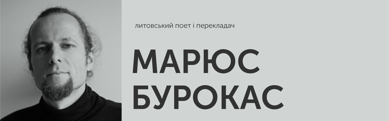 Марюс Бурокас (1977 р.) – литовський поет і перекладач, випускник Вільнюського університету. Перша збірка, «Ideogramos» («Ідеограми»), вийшла у Вільнюсі в 1999 р. Третя книжка, «Izmokau nebūti» («Я навчилася не бути»), нагороджена кількома європейськими відзнаками. Член Спілки письменників Литви і Литовської асоціації літературних перекладачів.