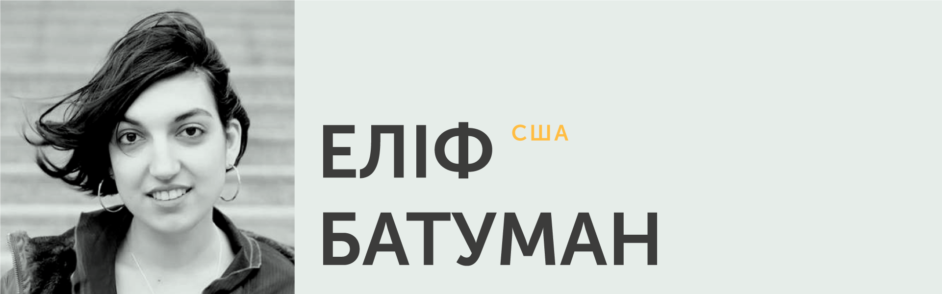 Еліф Батуман американська письменниця та журналістка, фіналістка Пулітцерівської премії 2018-го року. Має докторський ступінь у сфері літературної компаративістики. Авторка книжки мемуарів The Possessed, роману The Idiot та низки есеїв і статей, які публікувалися у відомих англомовних виданнях.