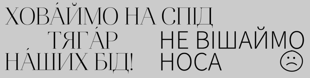 6. Ховáймо на спід тягáр нáших бід! (не вішаймо носа! «не вешайте нос!»)