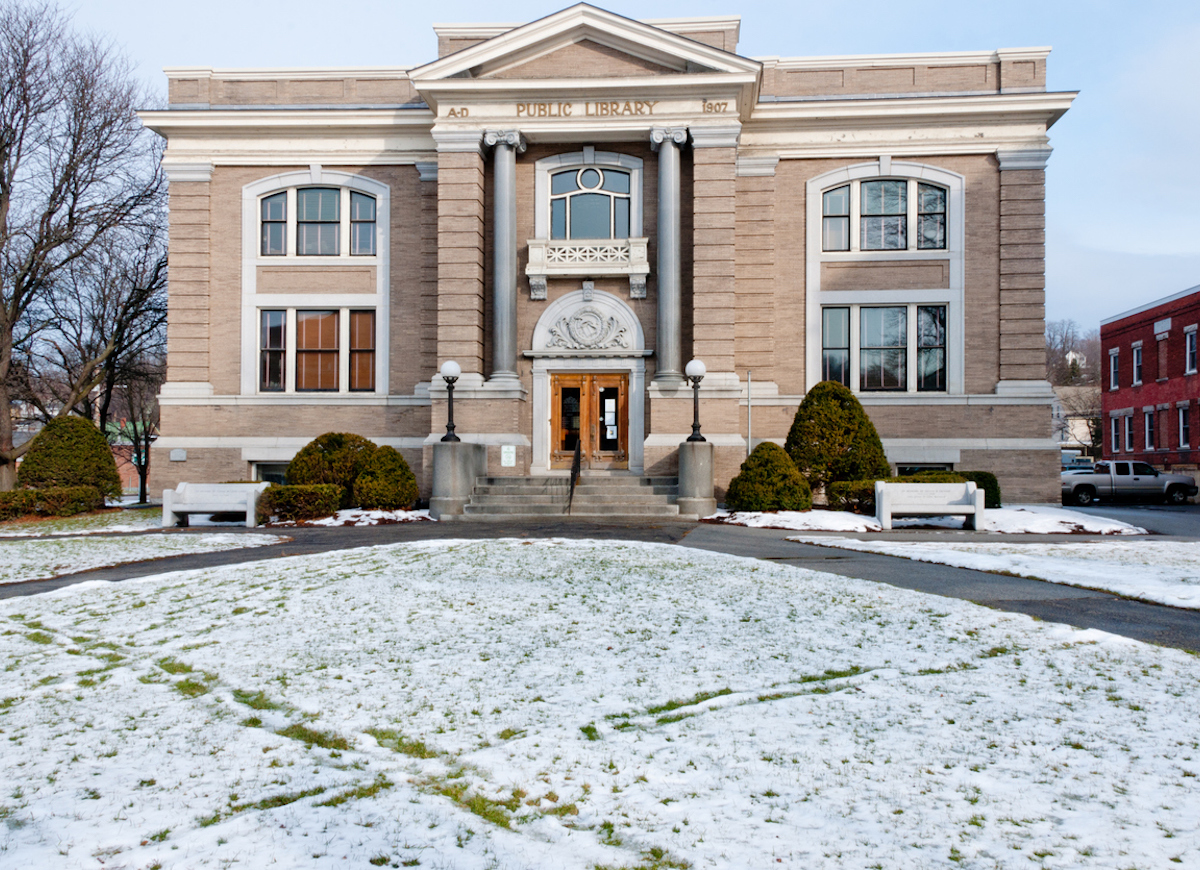 Вражаюча споруда у стилі ренесансу та класицизму була спроектована архітектором з Массачусетса Пенном Варні й побудована у 1907-1908 роках на кошти зі спадщини місцевого бізнесмена Леонарда Фроста Олдріча. Двоповерхова будівля прикрашена цегляним облицюванням з місцевого граніту, іонічними колонами та декоративним гранітним фризом. У 2016 році Вермонтська бібліотека була включена до Національного реєстру історичних пам’яток.