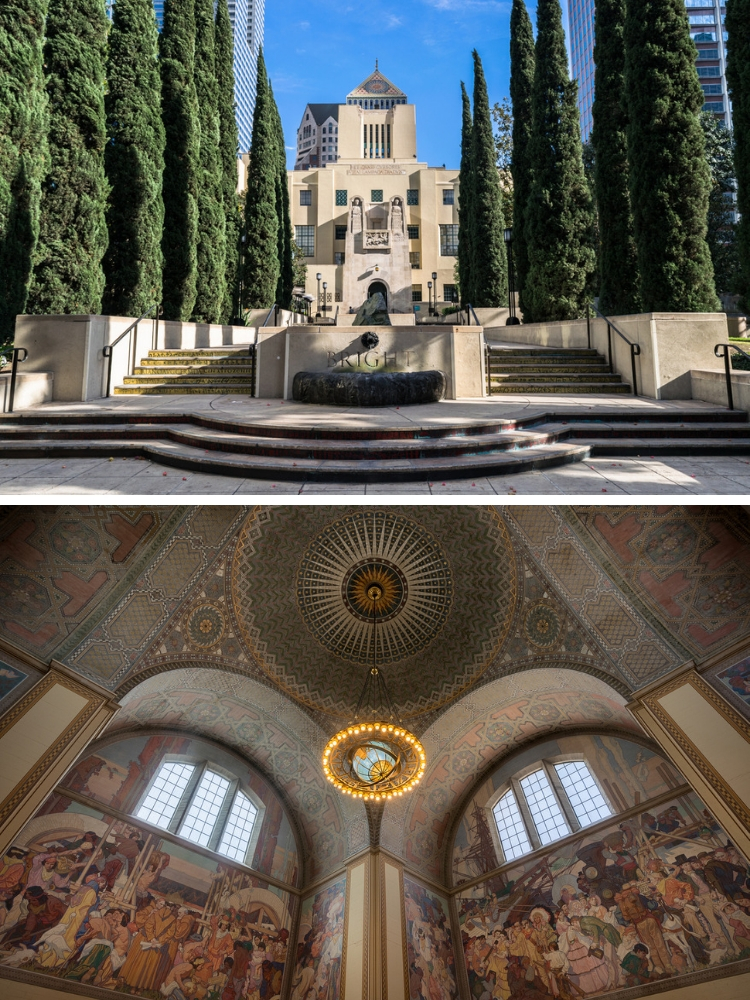 Центральна бібліотека Річарда Дж. Ріордана в діловому центрі Лос-Анджелеса була побудована в 1926 році та розташована в будівлі, яка зараз відома як Будівля Гудх’ю, а в 1993 році її розширили завдяки будинку, який названий на честь колишнього мера Тома Бредлі. Інтер’єр та зовнішнє оздоблення будівлі включає численні скульптури, а центральна ротонда прикрашена чудовою бронзовою люстрою «Зодіак» від Лі Лоурі. Завдяки своїй красі та культурному значенню бібліотека отримала статус історичної пам’ятки Лос-Анджелеса і включена до Національного реєстру історичних пам’яток.