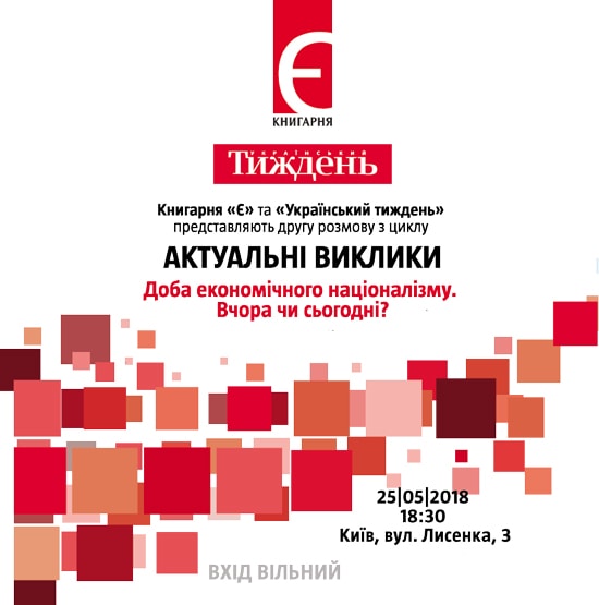 18:30 Книгарня «Є», вул. Лисенка, 3Про економічний націоналізм дискутуватимуть у Києві