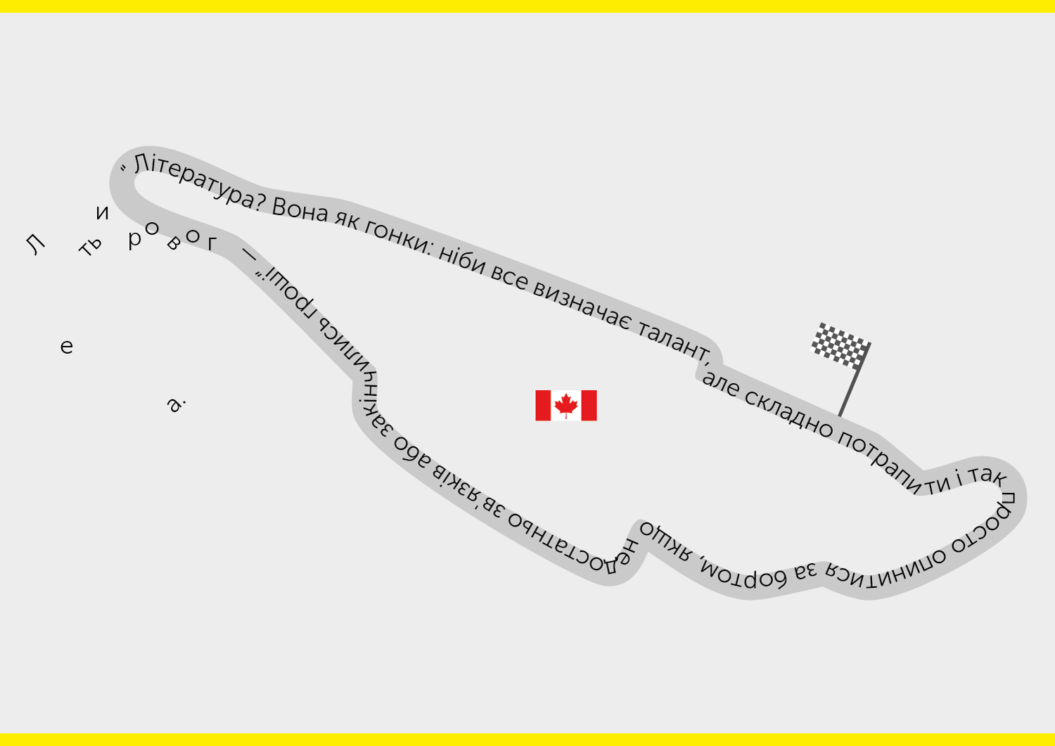 Що робити, коли критики тебе називають «письменник однієї теми»? Впадати у розпач? Шукати чогось нового чи сміливо нести свій прапор далі? Інколи осяяння та відповіді приходять у дійсно несподіваних місцях. Наприклад, на автодромі Жиля Вільнева.