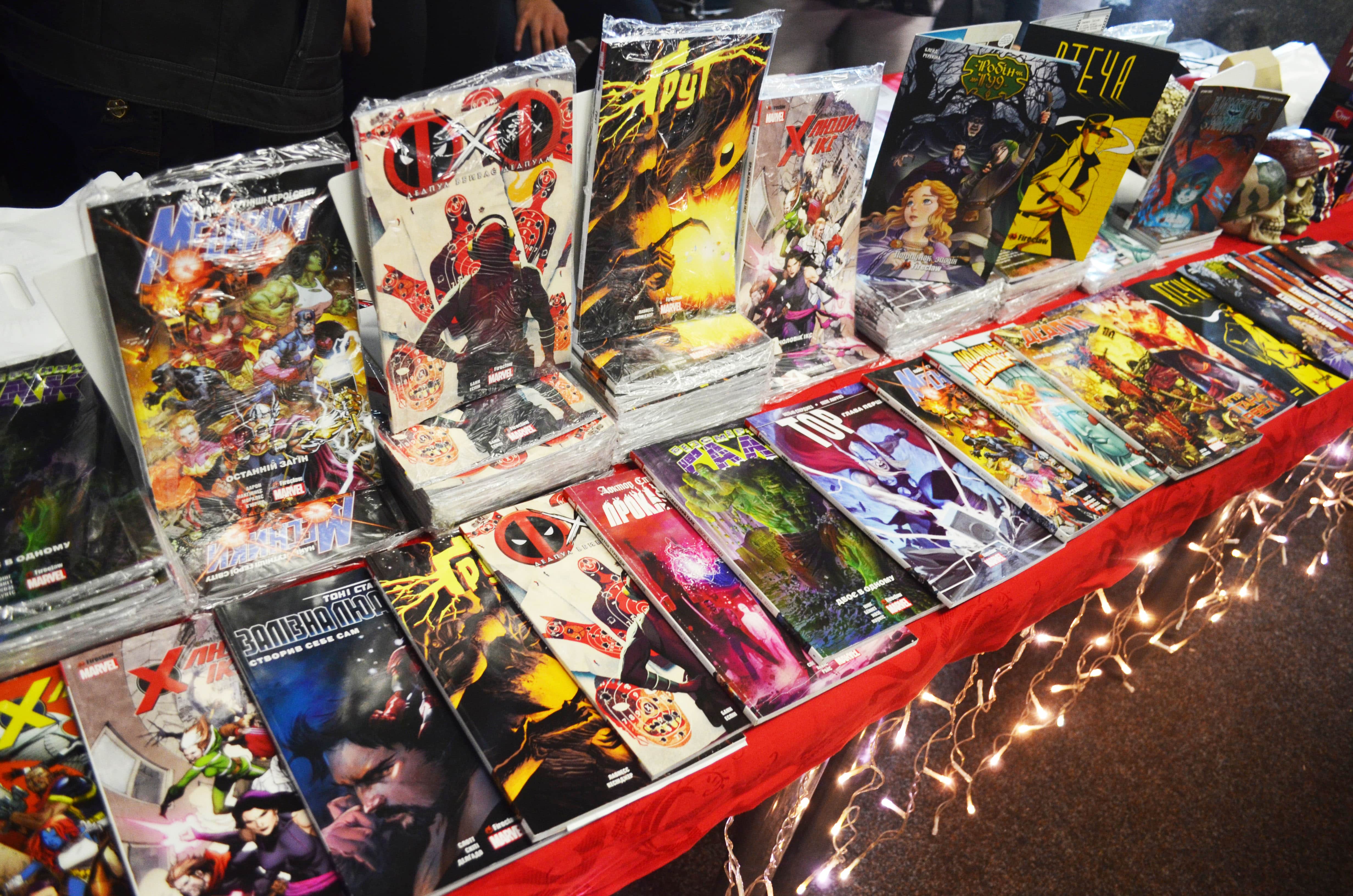Зі свіженького — видавництво «Видавництво» привезло комікс Тома Ґолда й агітувало пекти з Кафкою, Irbis Comics манило маленьких читачів яскравою обкладинкою пізнавального коміксу «Зубси», а ArtBooks презентувало комікс «Болівар» про зворушливу дружбу маленької дівчинки й динозавра. На їхньому стенді також можна було знайти книжки для дітей про світ Minecraft і почути про анонс коміксів «Зоряний замок» і «Марсі та загадка Сфінкса». Видавництво Molfar Comics на фестивалі спокушало дорослих читачів багатьма новинками, а серед анонсів ― Doctor Strange & Doctor Doom, Spider-Man Love Mary Jane, Chronicles of Hate, «Округ Ґерроу» та «Фантастична четвірка». Також видавці натякали на продовження серії про «Гарфілда» і нові тайтли ― серії Peanuts і My Little Pony.