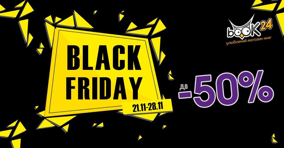 Магазин Book 24 також підготував знижки на книжки. Старт заходу оголосять 23 листопада о 00:01 ночі, а всі учасники заходу «Black friday від Book24.ua» отримають лінк на знижки на книжки улюбленних видавництв за 2 доби до офіційного старту «Black friday».