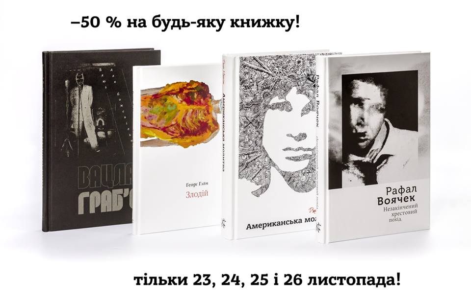 Знижки -50 % на всі книжки видавництва протягом чотирьох днів: 23, 24, 25 і 26 листопада. Але спершу треба заповнити анкету.