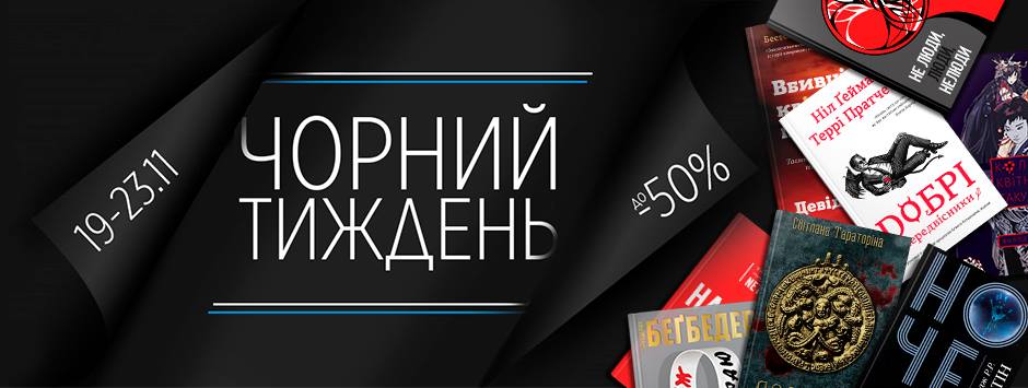 КМ-Букс також влаштували книголюбам справжнісінький Чорний тиждень. Акція триватиме з 19 по 23 листопада. Вартість всіх наявних в продажу видань знижено на 10%, 20%, 30% та 50%. Детальніше про акцію читайте за посиланням.