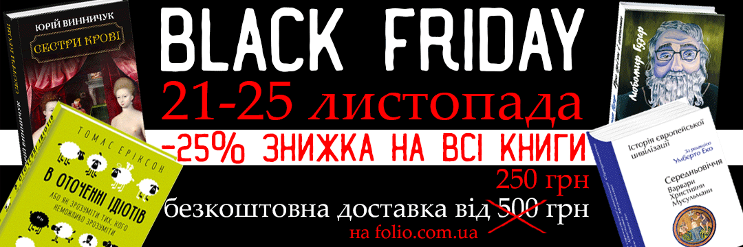 23 листопада 00:00 в інтернет-крамниці видавництва стартує Чорна п’ятниця, яка триватиме рівно до 23:59:59 неділі 25 листопада.