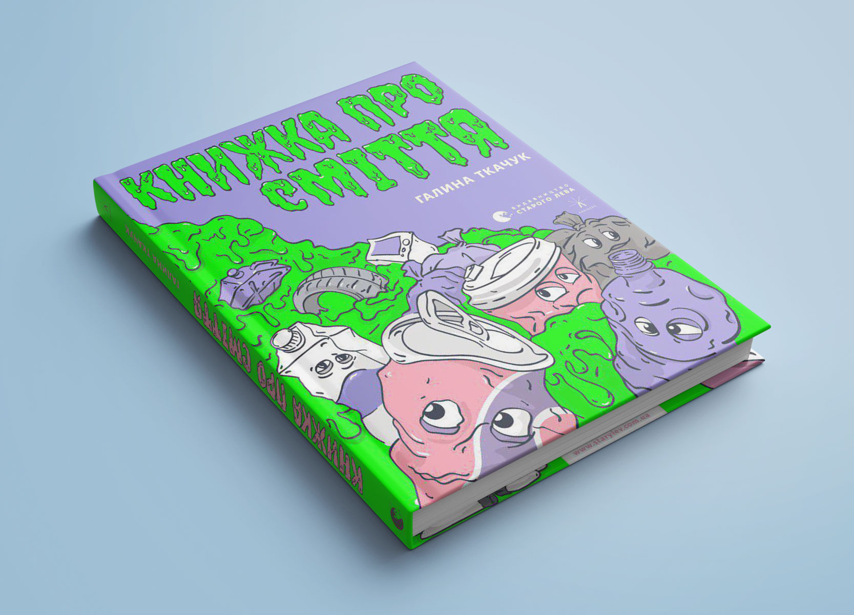 Зелений слиз, яким стікають заголовки цієї книжки, викликає огиду. Це свідомий прийом. Дітям, до яких звертається «Книжка про сміття», потрібно уявити проблему наочно, скажімо, у вигляді бридкої слизоти зі смітника. Дуже не хотілося б вступити в таку «зелень» черевиком, але доведеться. У близькому майбутньому, нагадує книжка висновки науковців, наша планета обернеться на суцільне й непридатне до життя сміттєзвалище. Уже зараз усі українські смітники в сумі розрослися до площі Івано-Франківська.