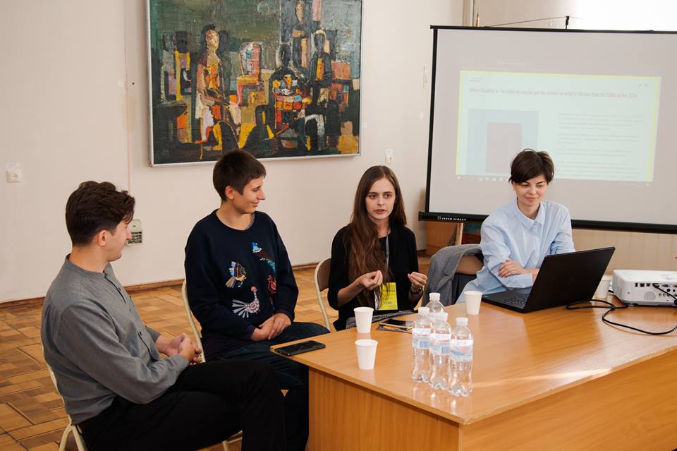 Роман Малиновський як модератор заходу підвів спікерок до питання походження та перекладу термінології. Це питання дуже пожвавило присутніх, адже часом перекладачі наштовхуються на те, що перекладу певних понять просто ще не існує, особливо якщо мова йде про переклад текстів про сучасне мистецтво.