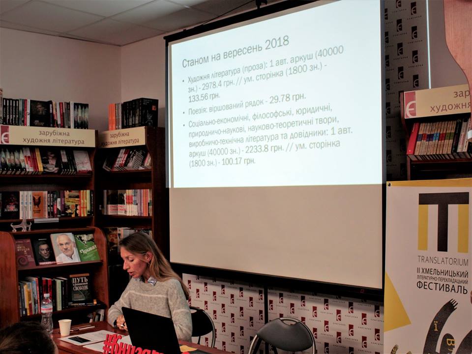 Велику аудиторію у другий день фестивалю зібрала також і розповідь Нелі Ваховської про гонорари та договори у роботі перекладача. Вона презентувала напрацювання робочої групи «Перекладачі в Дії» щодо гонорарів у різних видавництвах.