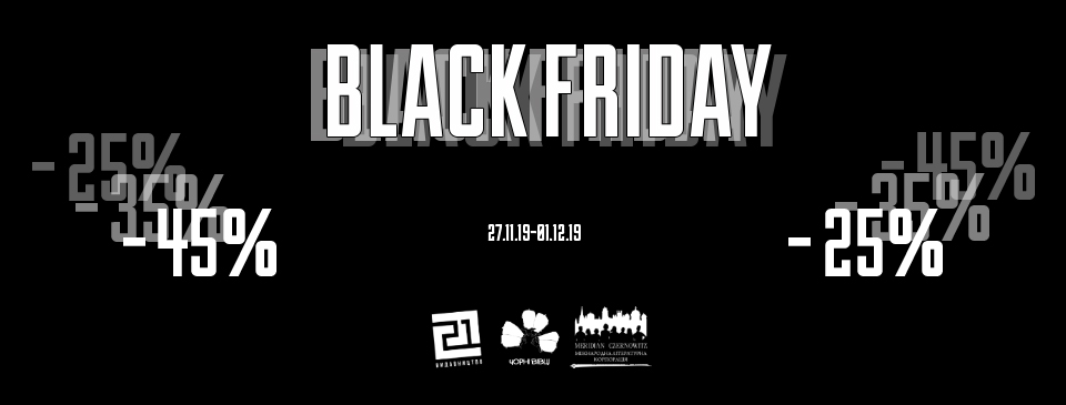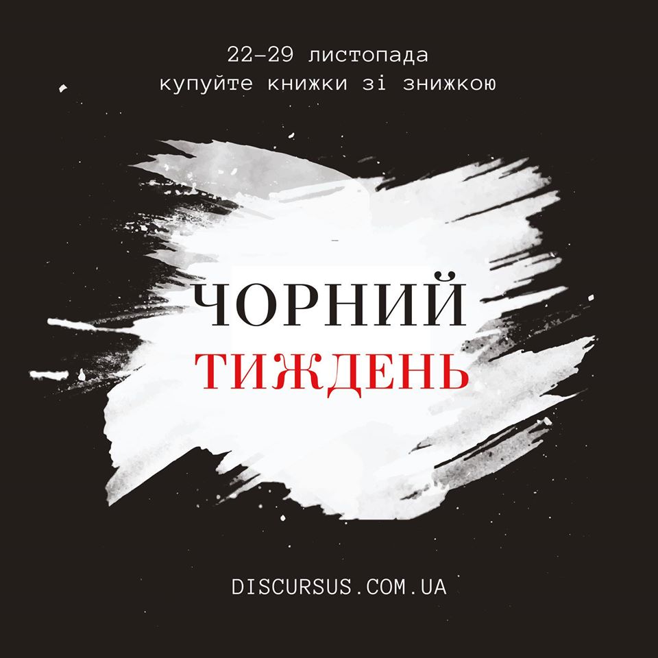 Discursus оголосили «Чорний тиждень». З 22 до 29 листопада купуйте будь-які їхні видання зі знижкою 20% на сайті видавництва. При оформленні замовлення вкажіть промо-код: читаю_по_чорному. Доставка замовлень на суму, більшу за 500 грн з урахуванням знижки — безкоштовна.