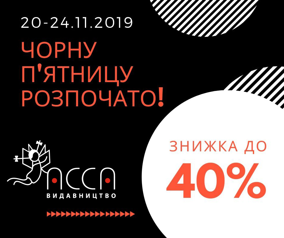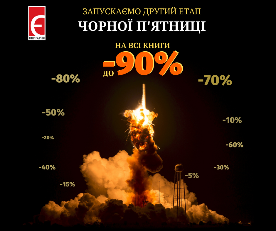 Знижки від 20% до 50% діятимуть на всі книжки в інтернет-крамниці видавництва. Акція розпочинається 29 листопада в 00:00 і триватиме до 1 грудня 23:59.