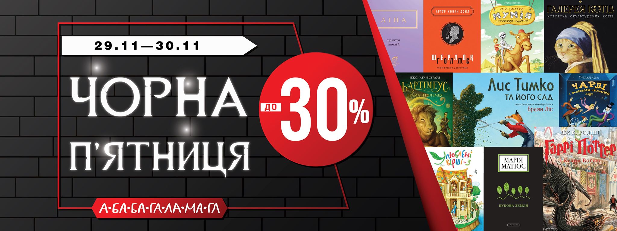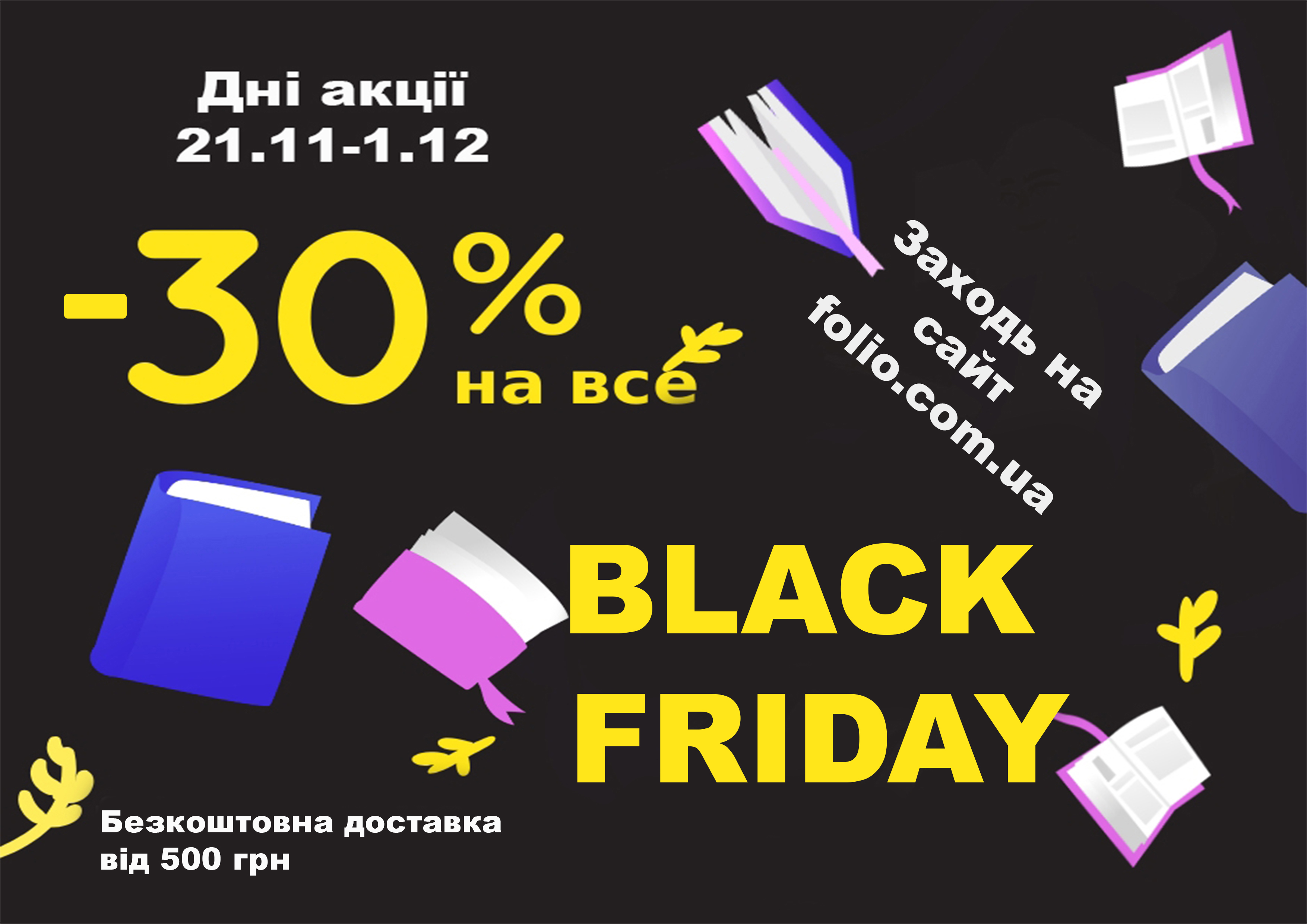 Знижки до 30% діють на паперові та електронні книжки з 27 листопада до 1 грудня. У фірмових клубних магазинах умови акції «Чорна п’ятниця» відрізняються. Деталі запитуйте у продавців-консультантів.