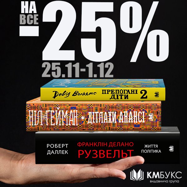 Протягом тижня з 25 листопада по 1 грудня у видавництві діятимуть знижки до 25% на всі книжки.