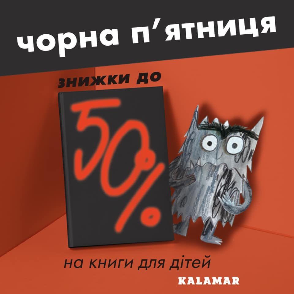 У дитячому видавництві «Каламар» з 29 листопада до 1 грудня діятимуть знижки до 50% на книжки «Пік, Новорічні канікули», «Монстрик і його кольори», «Це ж не джунглі», «Велика книга суперсил», «Рукавичку для носа», «Їде грудень на коні та Дюймовочка».