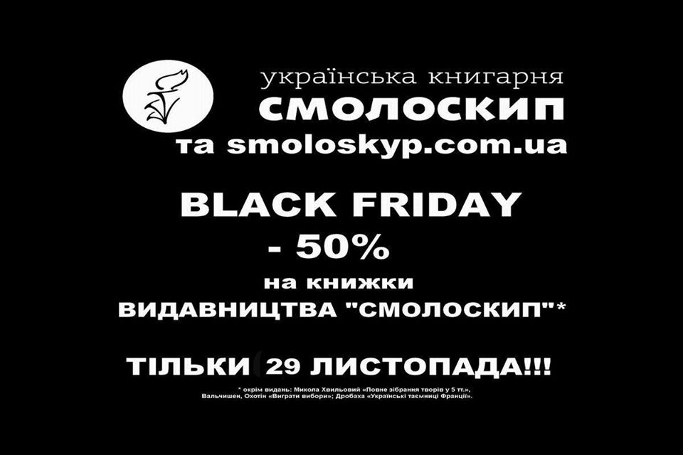 У «Смолоскипі» акція триватиме лише 29 листопада у книгарні (вул. Межигірська, 21, м. Київ з 12:00 до 20:00 год.) та на сайті інтернет-книгарні «Смолоскип і компанія» з 00:01 до 23:59 год.