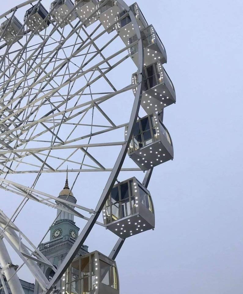 Атракціон привезли зі столиці Франції у 2017 році. Встановлення оглядового колеса (разом із ковзанкою та цирком) запланували як частину проекту облаштування Контрактової площі до зимових свят 2017 року. Конструкції мали демонтувати до 25 січня 2018 року.