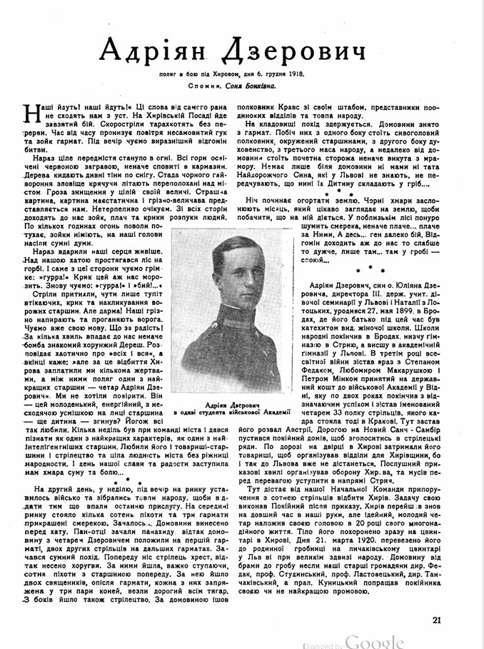 Малик А. Й. Мемуари учасників визвольних змагань 1917-1920 рр. (За матеріалами української періодики у міжвоєнний період) // Українська періодика: історія і сучасність. –Львів, 1995. С. 84.