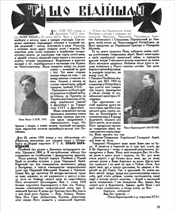 У виданні багато біографічних матеріалів: статей, нарисів до ювілеїв відомих військових діячів (Симона Петлюри, Віктора Курмановича, Миколи Юнакова, Євгена Коновальця, Альфреда Шаманека), а також спогадів у рубриках «Посмертні згадки» та «Ті що відійшли».