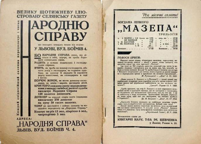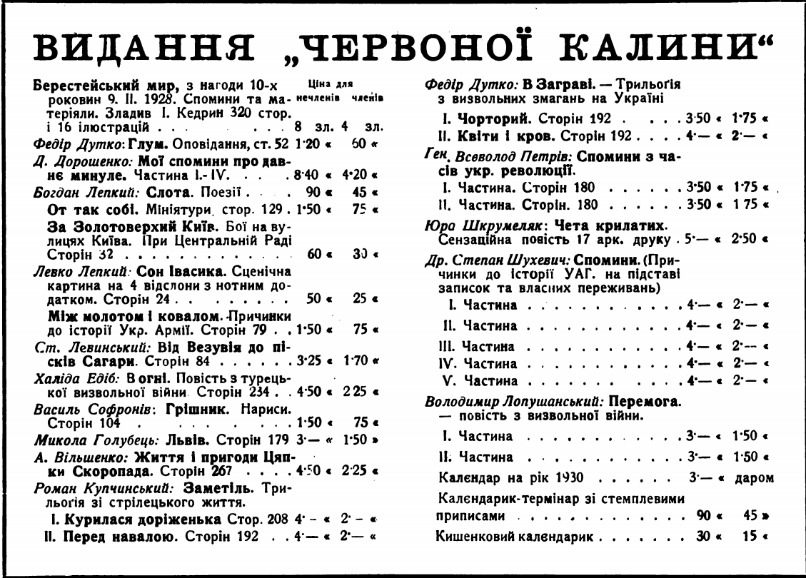 Відозва // Каталог книгарсько-видавничої спілки «Червона Калина». – Львів, [1925]. С. 10.