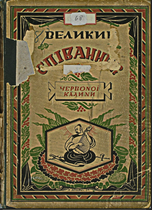 Цікава кольорова обкладинка роботи Миколи Бутовича: центрова фігура – козак-бандурист в обрамленні орнаменту із переплетених гілок калини і мотивів української вишивки, з виразною перевагою червоних барв.
