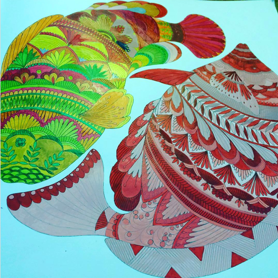 Пам’ятаю, як змішуючи лише два кольори — білий і червоний, я розфарбувала дві рибки так, щоб кольори не зливались. Самостійно я створила різні відтінки — від блідо-рожевого до насиченого червоного, і сама здивувалась, якою гарною вийшла картина. Спочатку я малювала олівцями. Але я дуже люблю насичені кольори, тому незабаром перейшла на фарби. Так я могла вже більше експериментувати з кольорами. Люди, яким пощастило знайти своє хобі, мають схожі почуття, це насолода від процесу тут і зараз”.