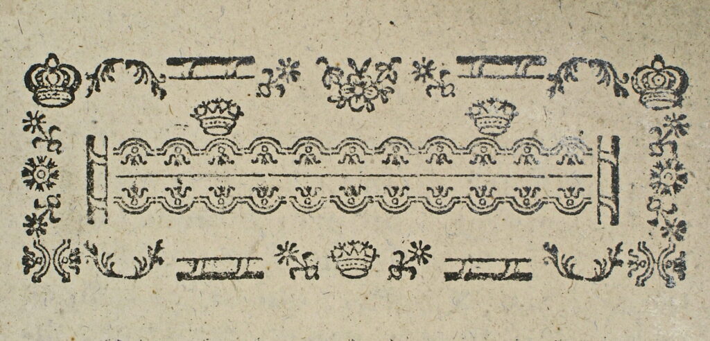 Документи мовчать і про джерела походження друкарських матеріалів. Цілком можливо, що шрифти походили з майстерні відомого варшавського друкаря, гісера (майстра з виготовлення шрифтів – Ред.), видавця й книгопродавця Петра Завадського. У своїй майстерні, відкритій 1777 року, Завадський відливав різні ґатунки антикви й курсиву, гражданські, гебрейські й готичні шрифти, ноти. В період свого функціонування він задовольняв потреби більшості друкарень на теренах Речі Посполитої. Дослідники засвідчують, що у луцькій друкарні використовували також шрифти, які відливали в гісерні, тобто майстерні з виготовлення шрифтів, Луцького монастиря.