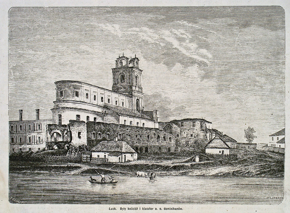 Луцький домініканський монастир. Малюнок Н. Орди. ХІХ ст.