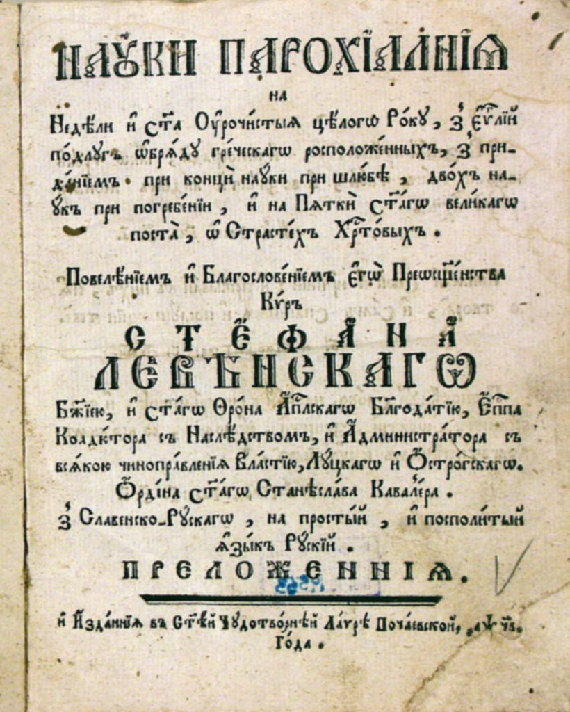 Кириличне видання «Наук парохіальних». Почаїв: Друкарня Успенського монастиря, 1792.