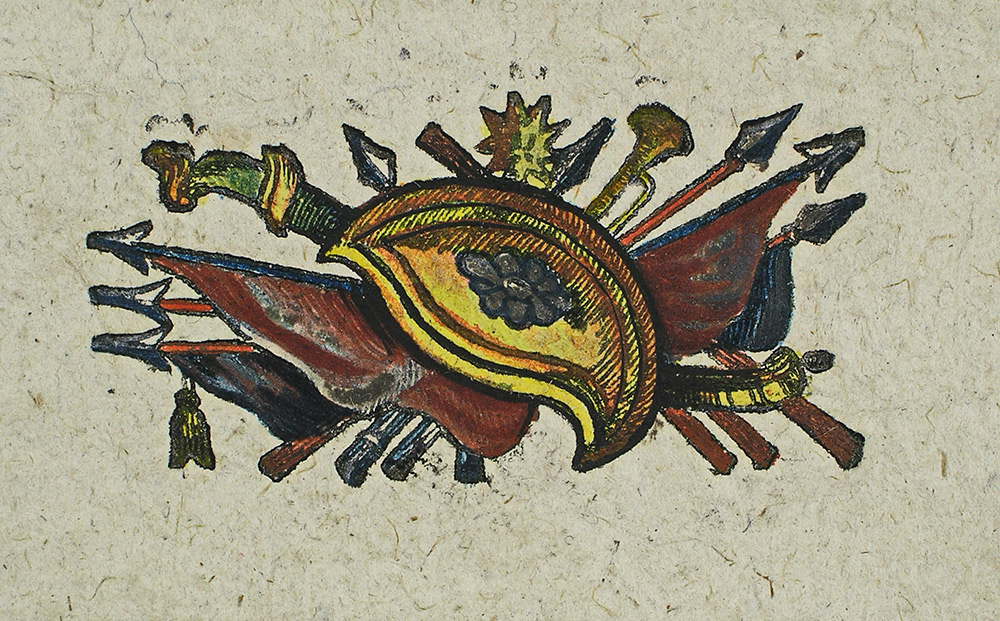 Віньєтка «глечик із гроном винограду» [у]: Collectio variorum orationum… – [Luceoriae]: Typis typographiae Luceoriensis Privilegiatae, 1797, титульний аркуш.