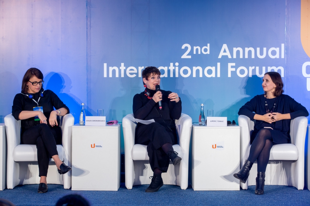 Це все — демонстративні елементи країни, яка цінує культуру, історію, спадок. Ця країна має фантастичне минуле, але так само неймовірне майбутнє — це очевидно з енергії, яка мене тут оточує. Вчора я ходила у кав’ярню, заходжу — і кажу «О господи, невже я опинилася у районі Гакні в Лондоні»? Хіпстери, музика… Дивовижно! Те, що у межах цієї конференції був балет і танці! Я звернула увагу на ваш стенд у Франкфурті — виставка ілюстрації була просто дивовижна! Тож моє перше враження — я в захваті.