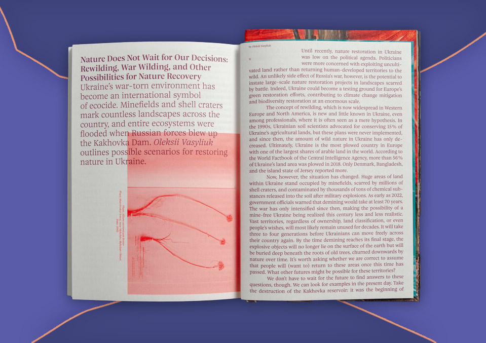 Solomiya is a return to the freedom of samvydav in the form of a contemporary publication. Established in April 2022 by photographers Sebastian Wells and Vsevolod Kazarin in response to Russia’s full-scale invasion of Ukraine, this English-language magazine has already released four issues. The fourth, The Environmental Issue, published in January 2025, was created in collaboration with the Ukrainian Environmental Humanities Network (UEHN).