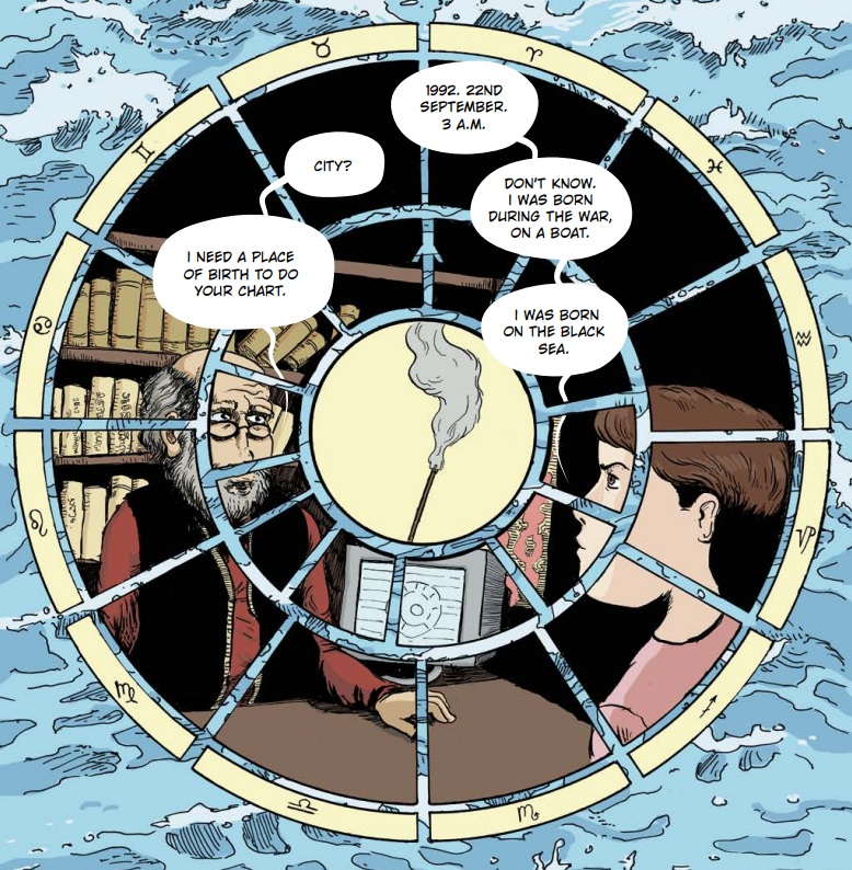 At the very beginning of the comic, an illustration of a woman, born in the middle of the sea, asks an astrologer to tell her the date of her death. Its meaning only becomes clear at the end. The Russo-Ukrainian war rages on, and protests continue in Georgia because the human river from the heart of the country will never cease flowing toward justice.