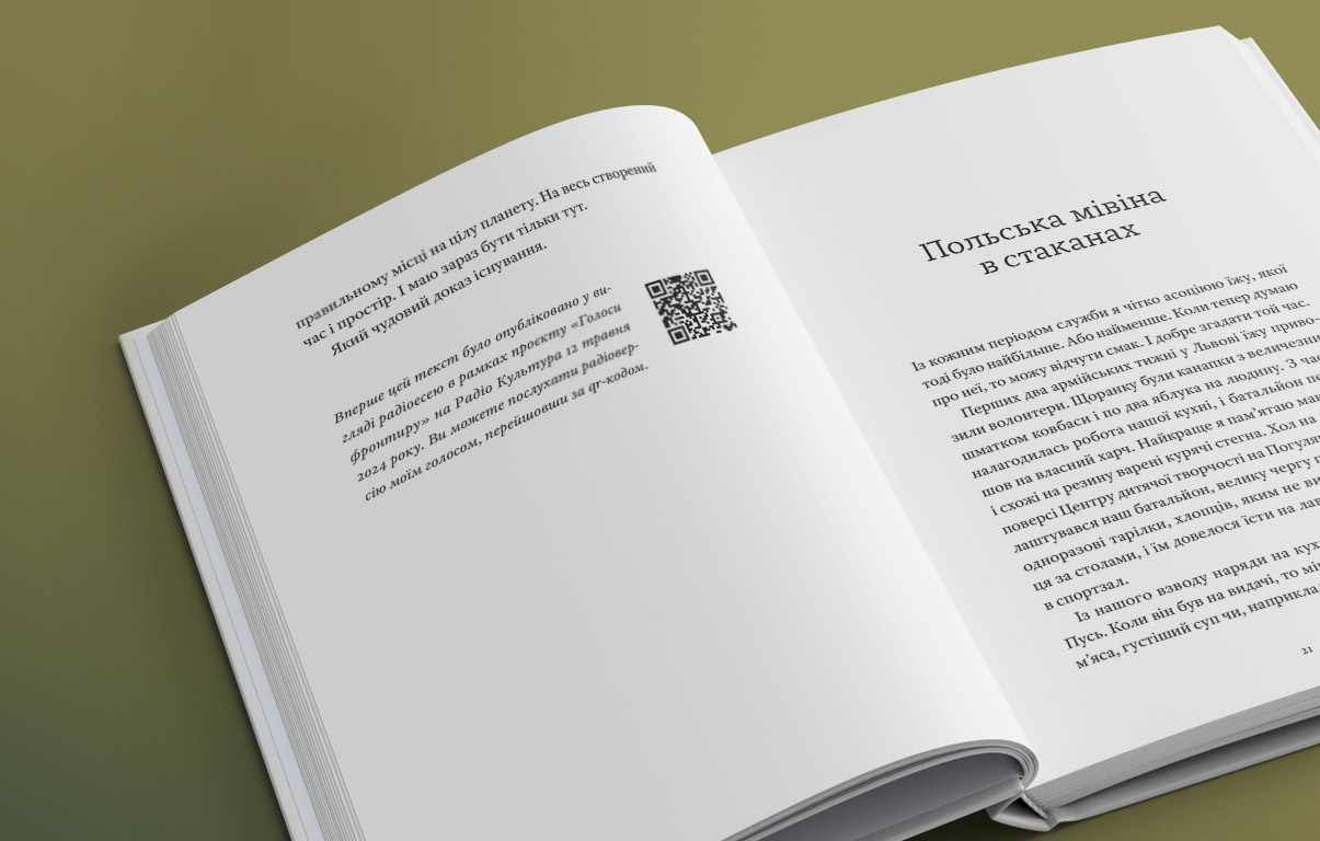 Dron writes about some of his own comrades, in particular the death of Oleksandr Kobernyk (call sign “Doc”), who worked as a teacher in Lviv. The author focuses on real events that are part of his personal life story and the war itself. However, they acquire existential significance and symbolic expressiveness. One particularly powerful moment in Dron’s narrative is where the author writes about a street in Lviv named Mechnikova, on one side of which there is a maternity hospital, and on the other, the so-called “Field of Mars,” where soldiers who perished in the Russo-Ukrainian War are buried. This specific cityscape becomes highly symbolic in the writer’s view: