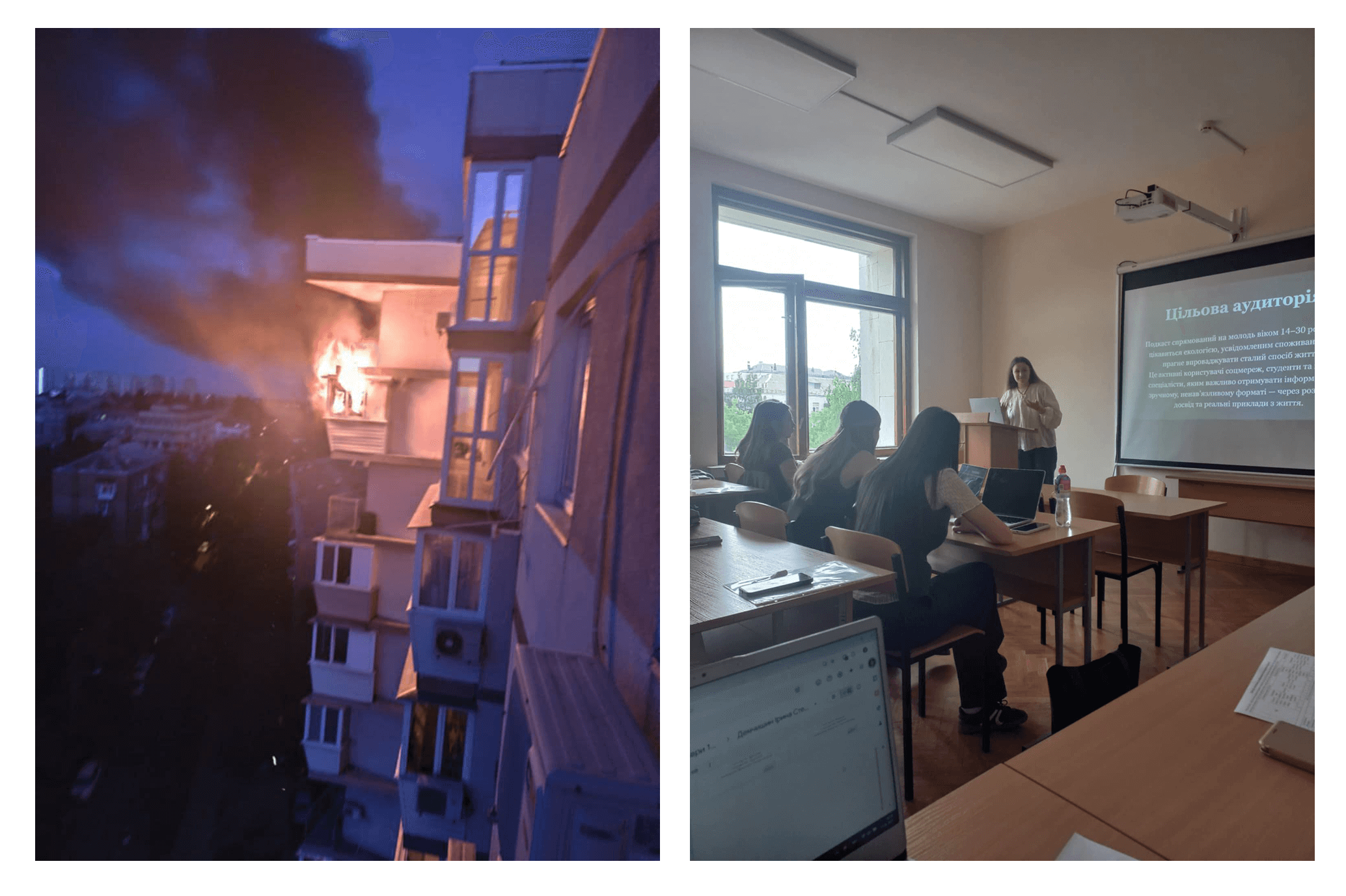 After such a terrifying night, I gave my child a cold breakfast, called my parents to reassure them we were okay, and went to work — because today was thesis defense day for the journalism undergraduates at the university. The students were sleep-deprived, and so were the exam committee members. But the defenses went on, and the future journalists presented high-quality work, most of it focused on the war.
