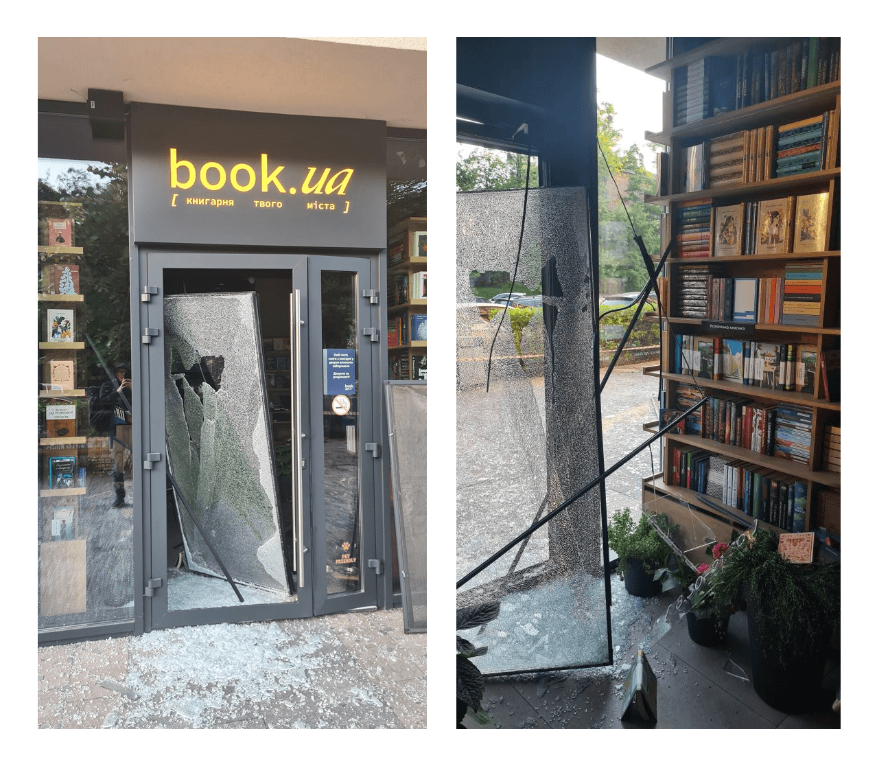 “The door didn’t withstand the impact at our beloved Faina, but the books held strong! We will recover and get back to work! And to spite the Moskals, we will open a new bookstore! Our condolences to all those affected and to the families of those killed in the night attack on the capital.”