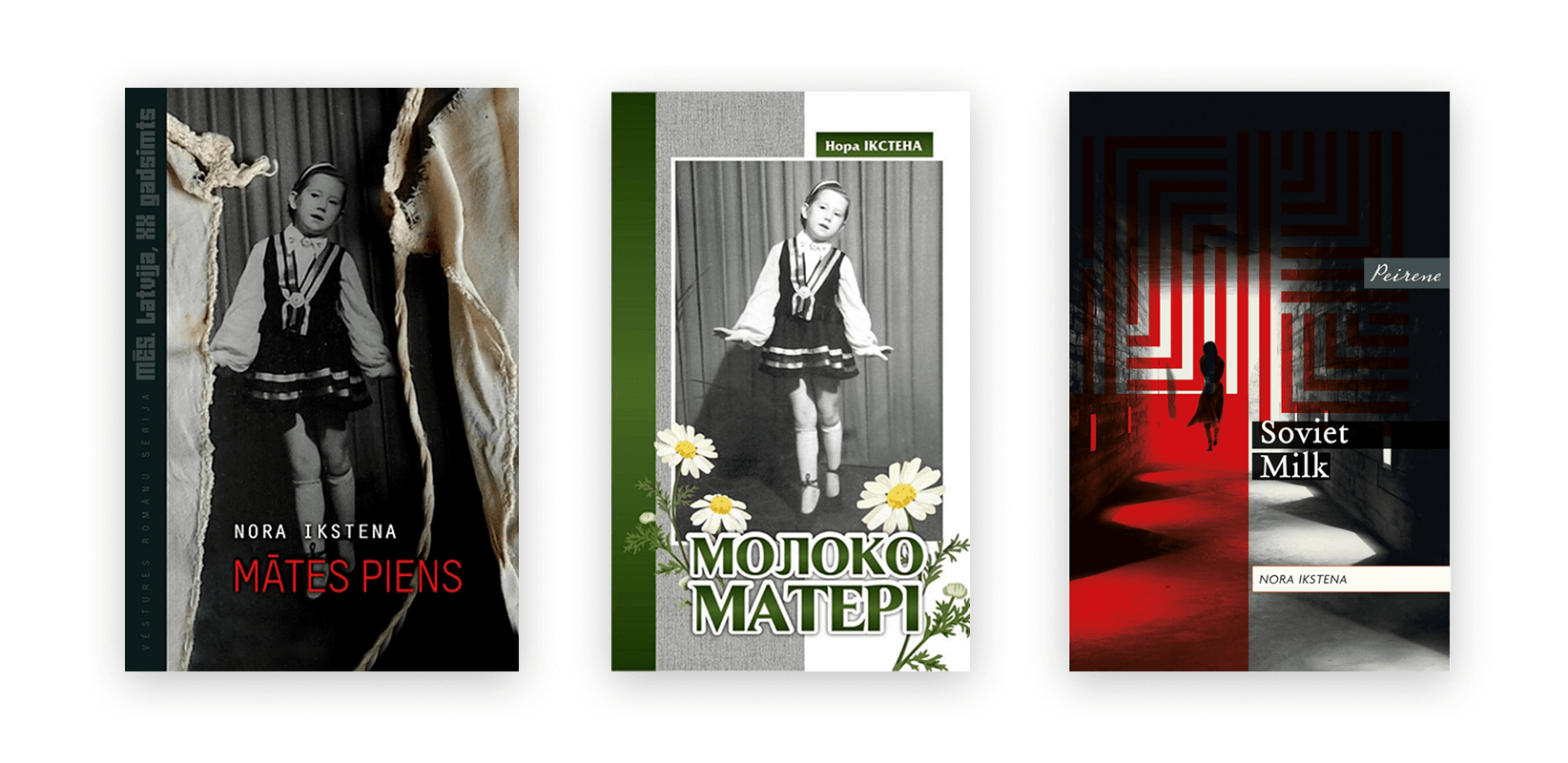 “Soviet Milk” book covers in English, Latvian and Ukrainian