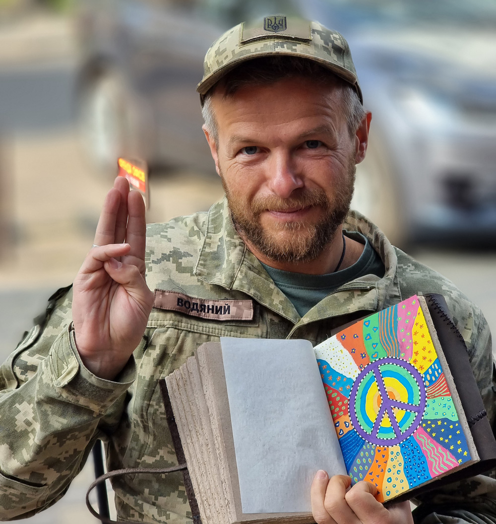 He had no previous military experience. “The main reason I joined was to be with the people.” From this experience came his short book Ordinary People Don’t Carry Machine Guns”, published in Ukrainian, English, and French. “It’s exactly about that: that no one was born for war, that all of us who fight didn’t want it, and still don’t. It was forced upon us by the invasion.”