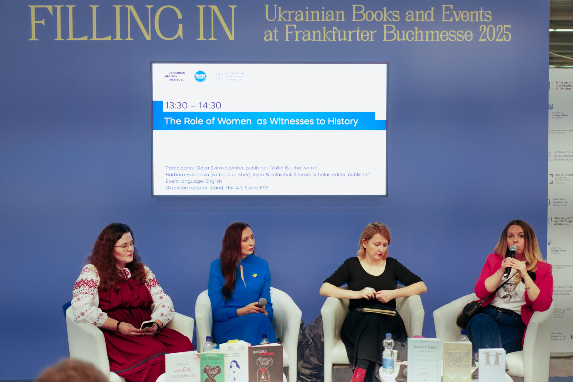 Повна зала на публічній дискусії «Жінки, що засвідчують історію (The Role of Women as Witnesses to History)» на національному стенді України засвідчила неабияку зацікавленість іноземців та іноземок жіночим письмом в часи війни та тим, як особисті історії українських жінок стають частиною глобальної розмови. На прикладі книжки Віолетти Кім «Плач, сестро, смійся» (Creative Women Publishing) — збірки есеїв і глибинних інтерв’ю про жіночу вразливість і стійкість під час війни, яка якраз вийшла чеською у видавництві wo-men, учасниці обговорювали письмо як простір сили та видимості жіночого голосу.