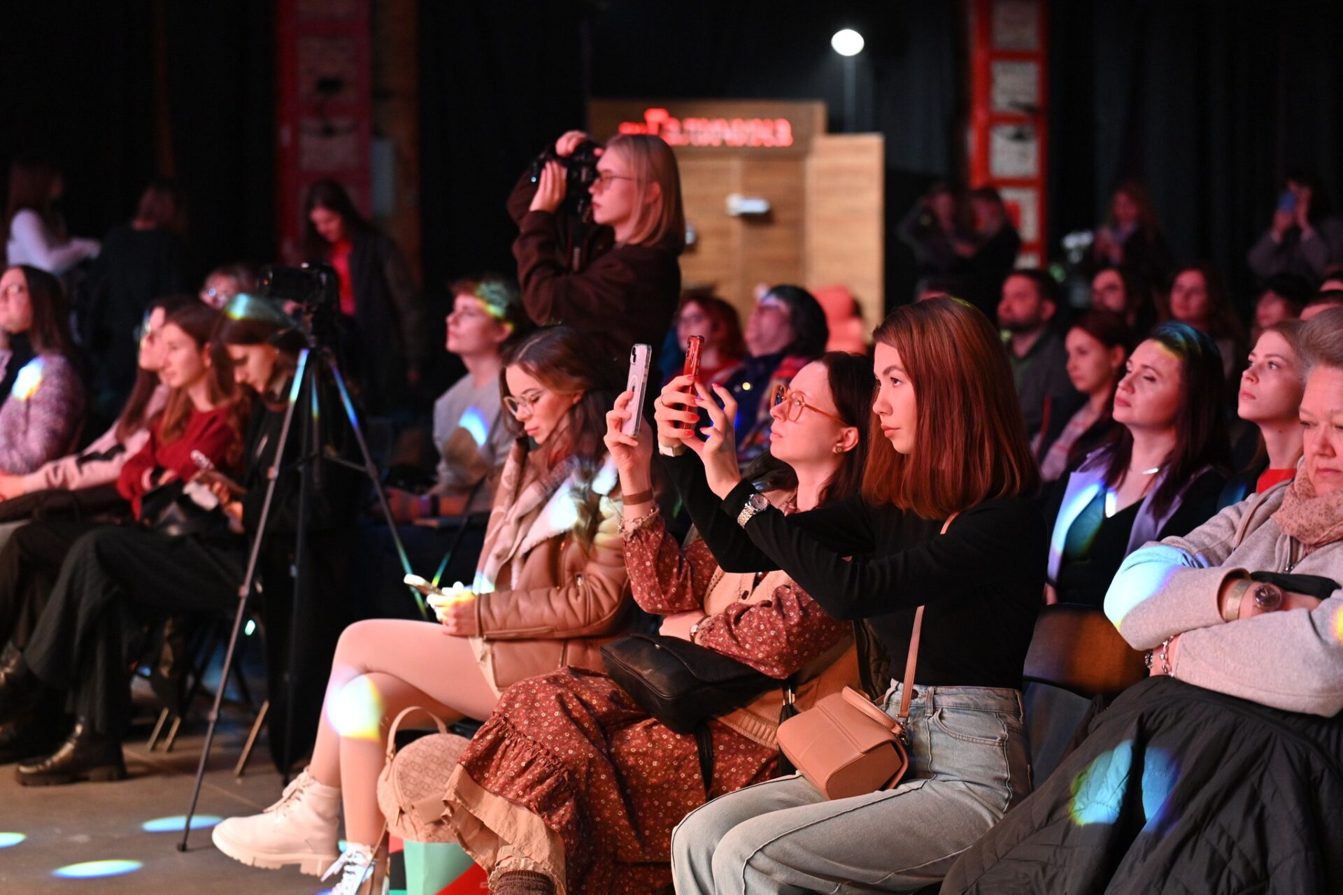 На початку читань гостей дуже небагато. Але поки я в першому ряду «залипаю» у відео й голоси, позаду вже збирається повна зала.