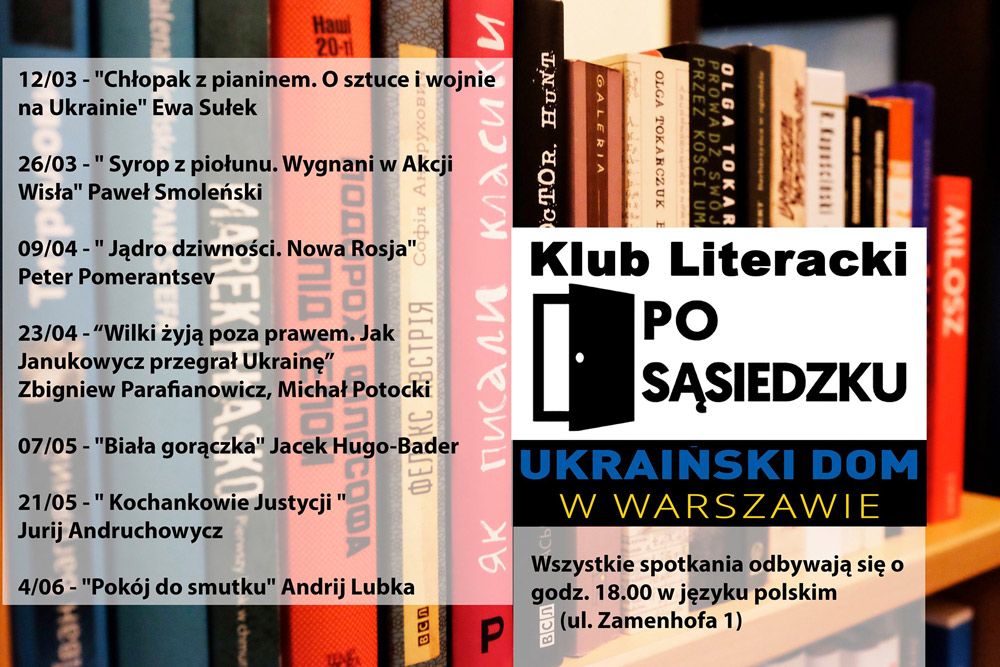 “Klub Literacki” Po sąsiedzku з’явився ще до повномасштабного вторгнення Росії в Україну як спосіб побудови діалогу між українцями та поляками за допомогою літератури. Засновницею й ідейницею клубу була Олександра Іванюк. На зустрічах клубу обговорювали книжки, що стосуються сходу Європи – репортажі, історичні тексти, романи. Основною ідеєю стало те, що хороша література може боротися зі стереотипами, протистояти пропаганді, дає змогу подивитися на суть речей. На той час зустрічі проводили польською мовою. Це був спосіб запросити до діалогу наших польських сусідів.