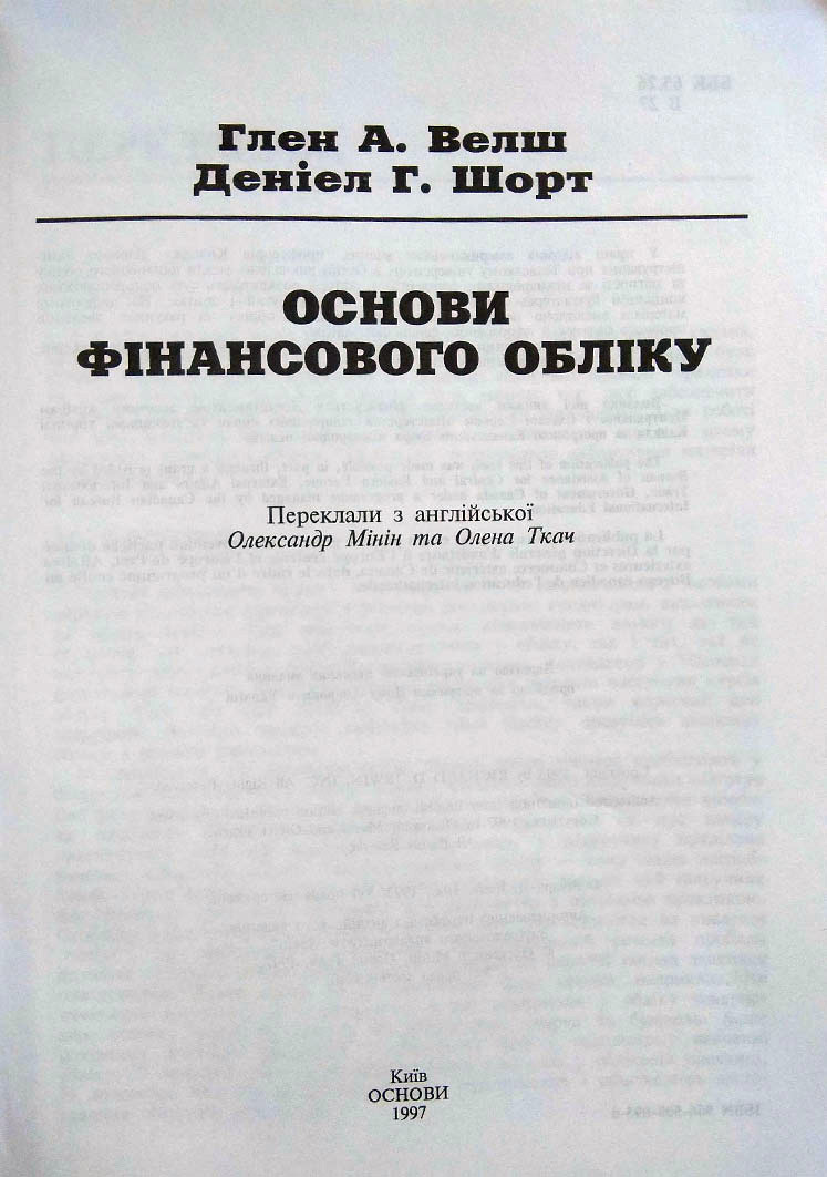 Одна з перших книжок видавництва – теж про основи, а саме «Основи фінансового обліку» Гленна Велша та Даніела Шорта, переклад свіжої західної праці про нові стандарти бухгалтерського обліку. Російською мовою вона ще не вийшла, що подивувало читацьке коло.