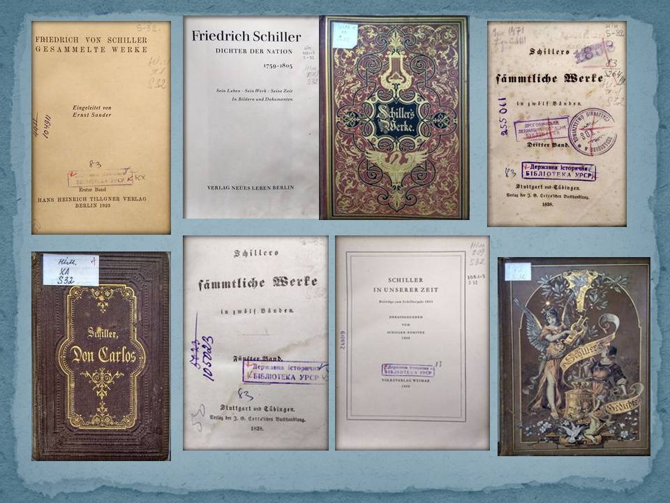 Національна історична бібліотека України відкрила тематичну віртуальну виставку з фонду відділу видань іноземними мовами, приурочену до 260-річчя від дня народження Фрідріха Шиллера (Шіллера). Про це йдеться на офіційному сайті бібліотеки.