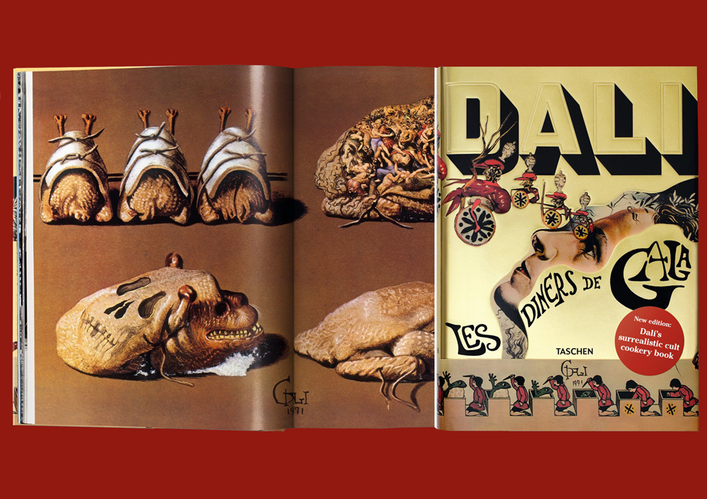 Сальвадор Далі займався ілюструванням книжок в 50-60-х роках. Він мав угоду з одним видавцем, для якого робив ілюстрації, але раптом вирішив зробити авторську кулінарну книгу «Les Diners de Gala» в іншому видавництві. Звідки ідея кулінарної книги? В 50-х роках, мешкаючи в Америці, пара влаштовувала неймовірні вечірки. Кожну з них оформлював сам Далі, а особливу увагу приділяли їжі та її подачі, вишукували особливі рецепти, працювали з рестораторами. Тому барокові столи з ілюстрацій в книжці – не колаж, а реальні фотографії.